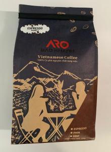 Bao bì: giấy kraft tráng nhôm mặt trong, nẹp miệng túi, sử dụng van thông hơi một chiều theo tiêu chuẩn Châu Âu, nhằm bảo quản chất lượng tốt nhất cho hạt cà phê.
